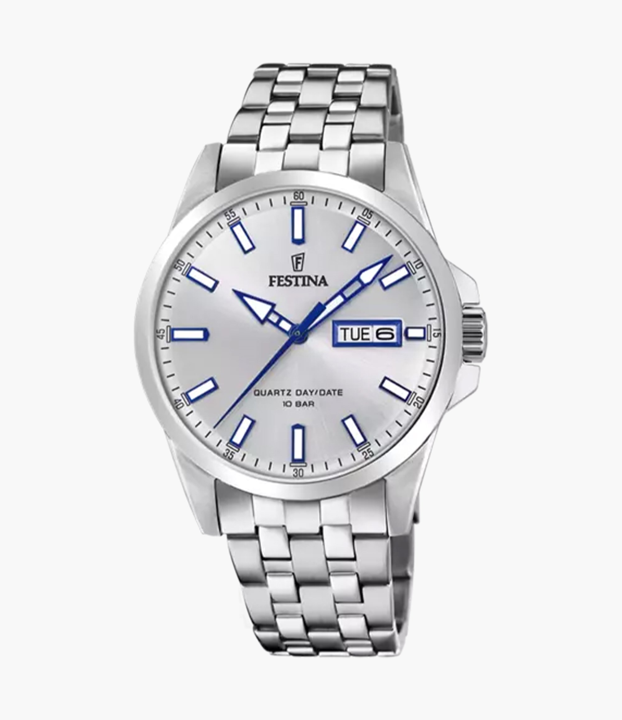 Orologio da uomo Festina in acciaio con quadrante grigio in indici blu