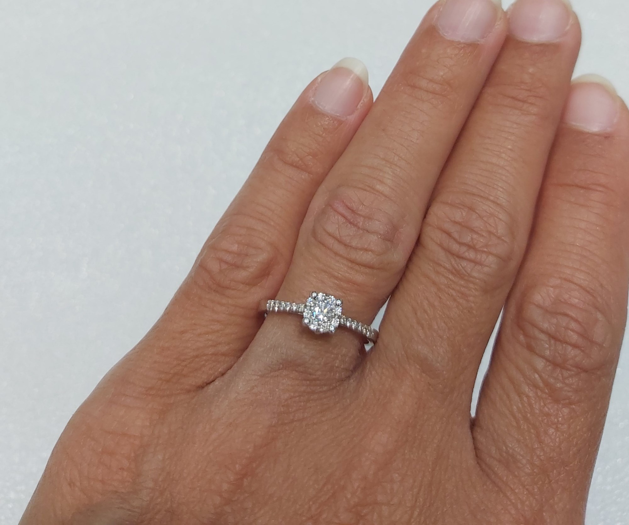 Anello solitario in oro bianco con diamanti per un totale carati 0.60. Davvero spettacolare, luminoso, raffina ... leggi tutto>>