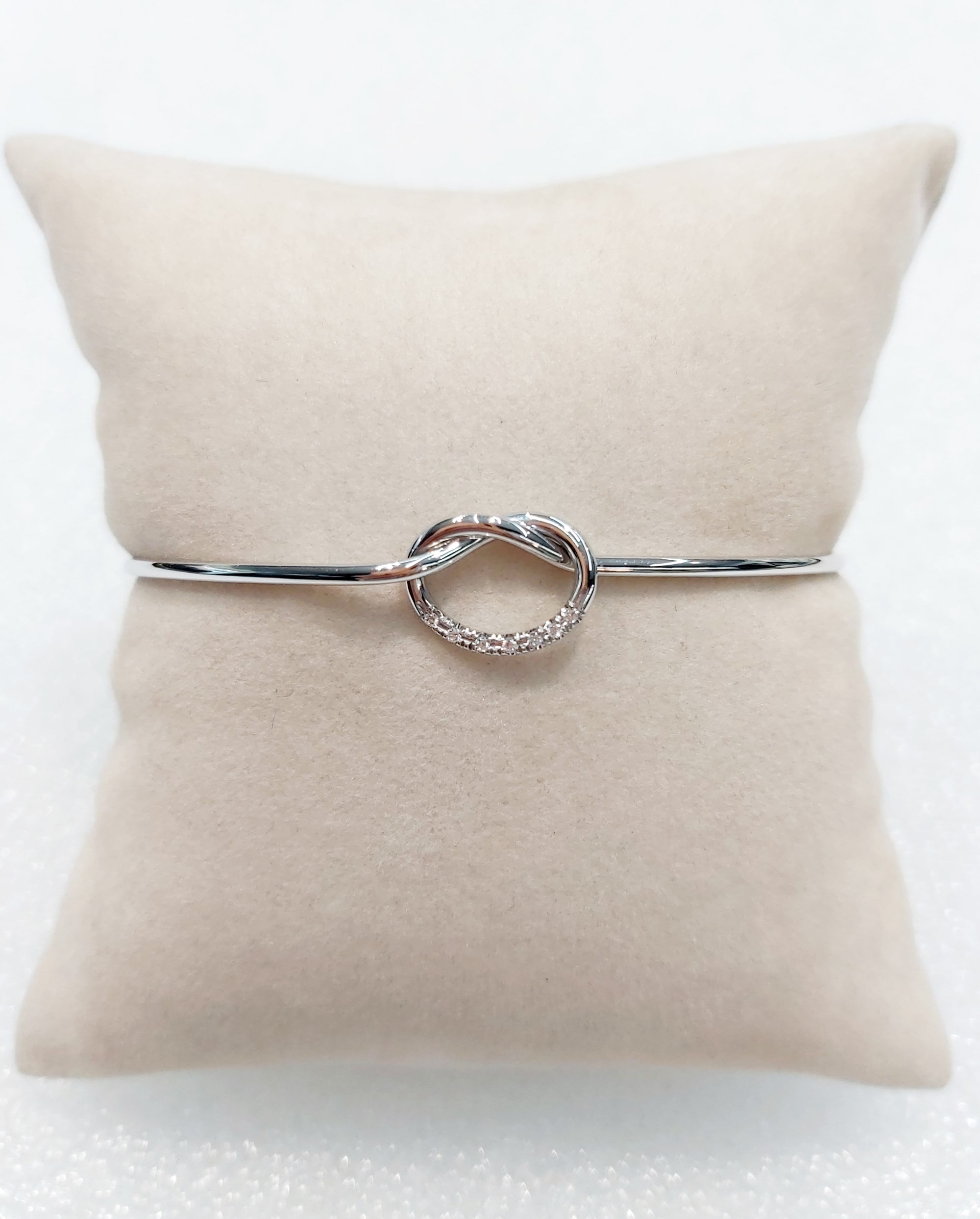 Bracciale rigido in oro bianco con zirconi. Raffinato, luminoso. Lo stile minimal e i dettagli della lavorazio ... leggi tutto>>