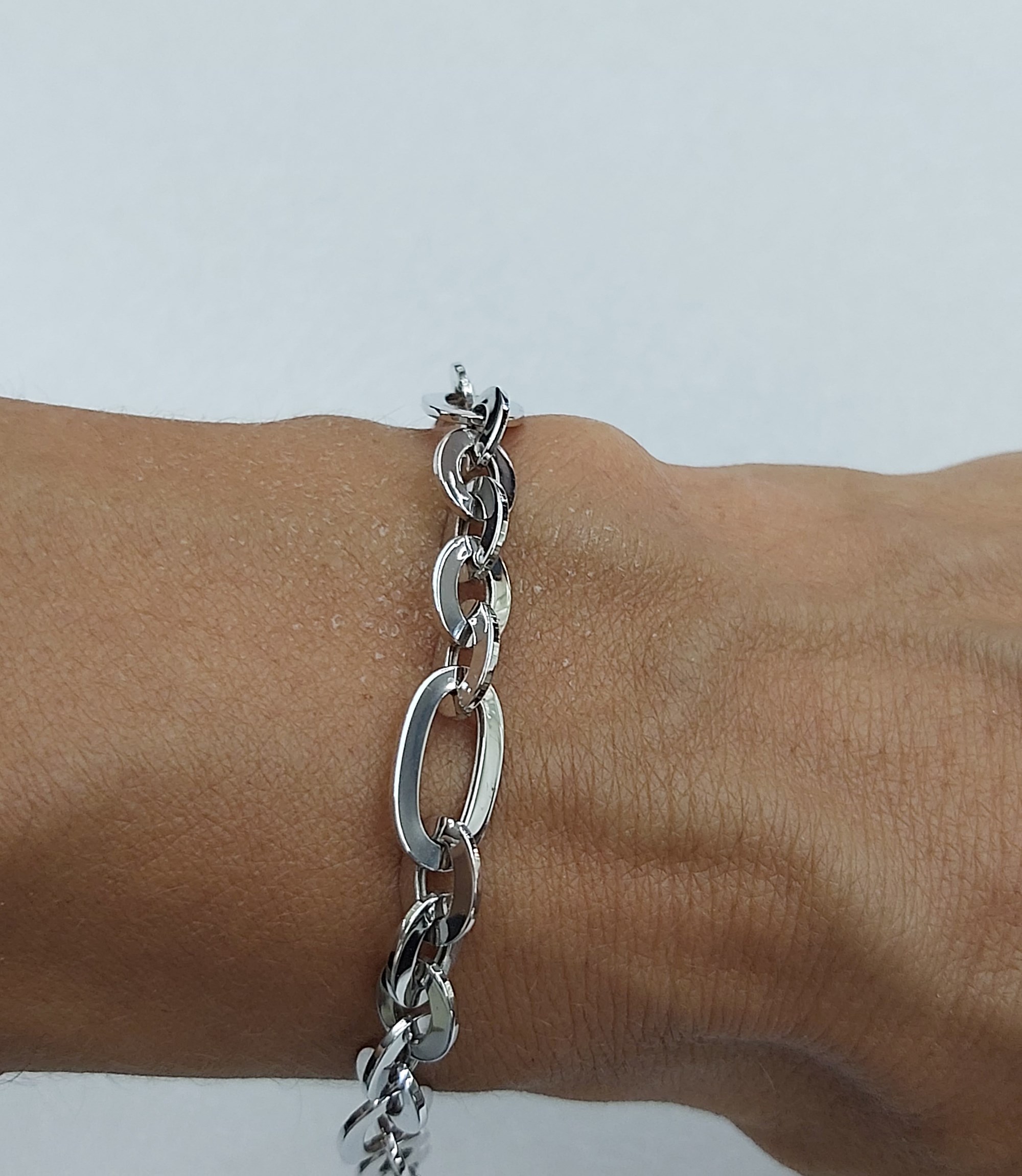 Bracciale tipo catena in oro bianco. Luminoso, intramontabile, piacevole da indossare. Perfetto per qualsiasi occasione.