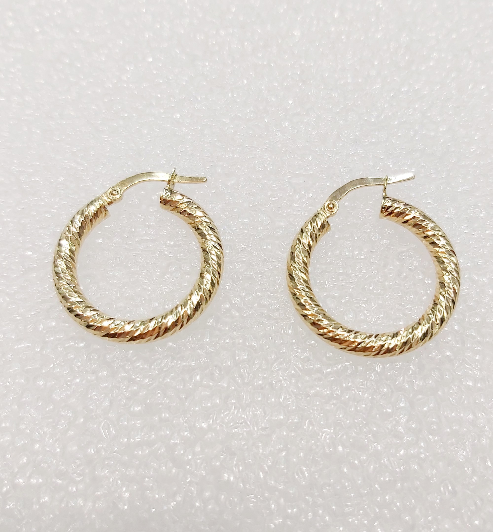 Schione in oro giallo a torcion, diametro 20mm. Luminose, brillanti e femminili.