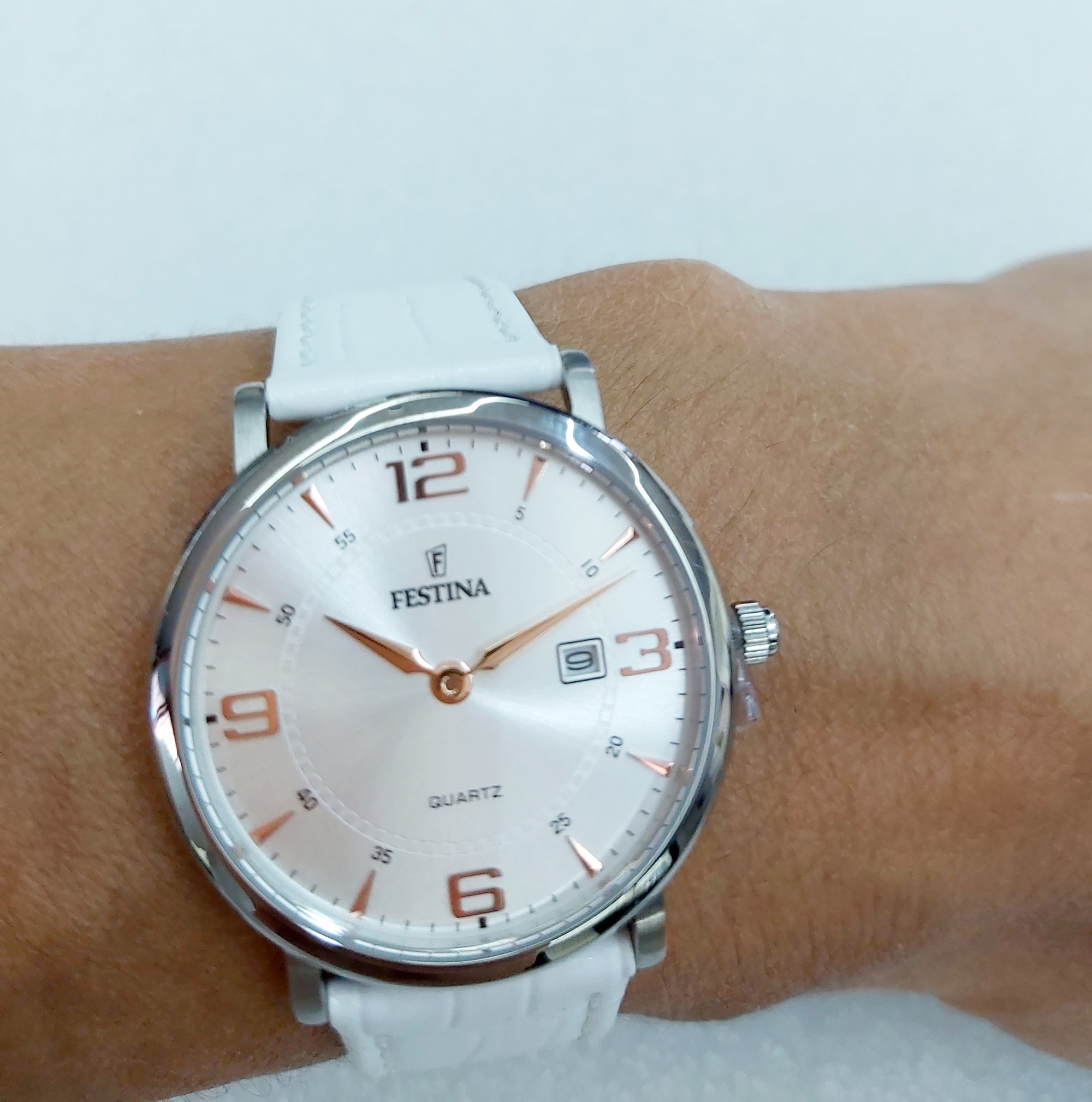 Orologio da donna in acciaio Festina e pelle bianca. Dimensioni della cassa mm 36. Resistente all'acqua 3 atmo ... leggi tutto>>