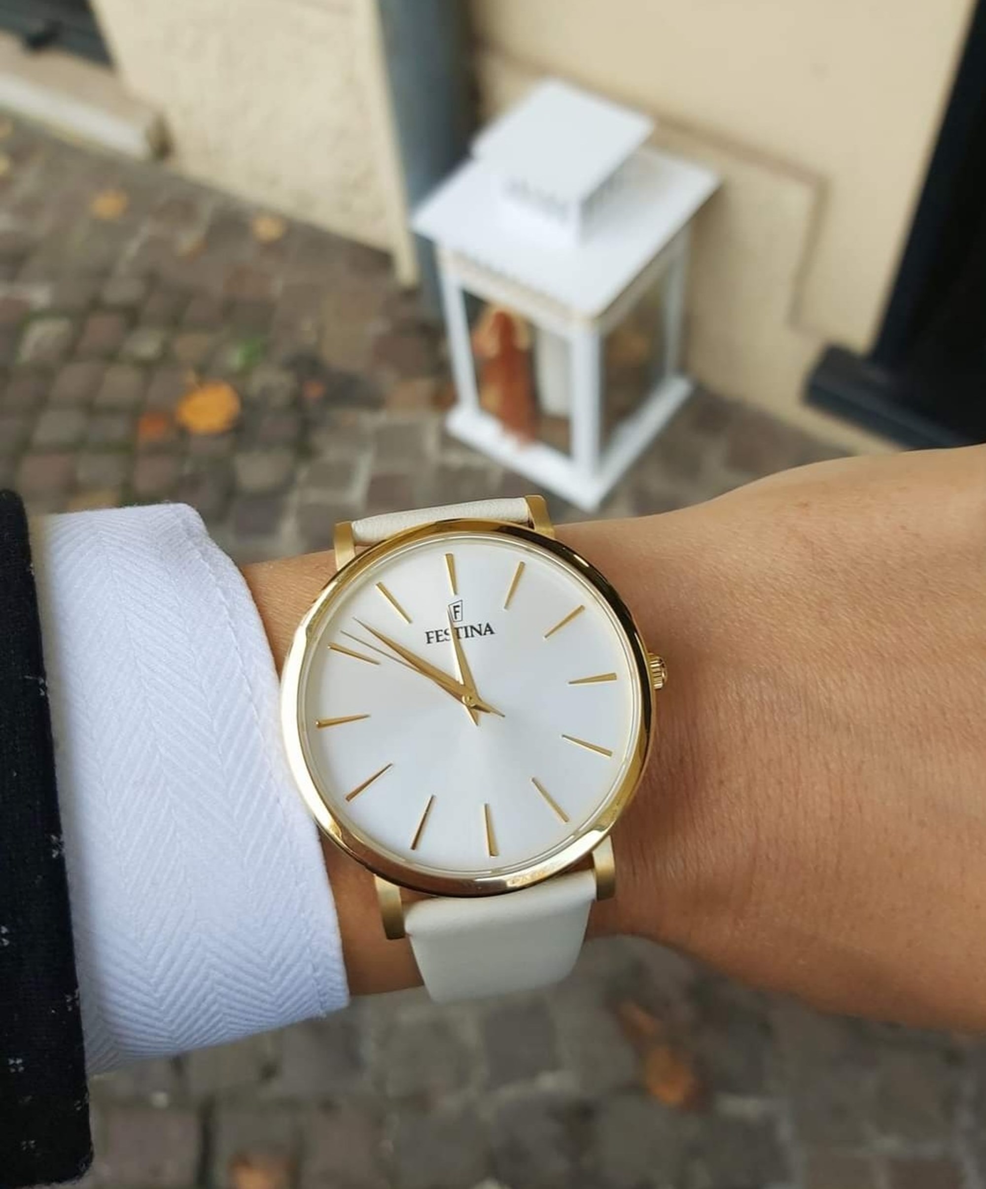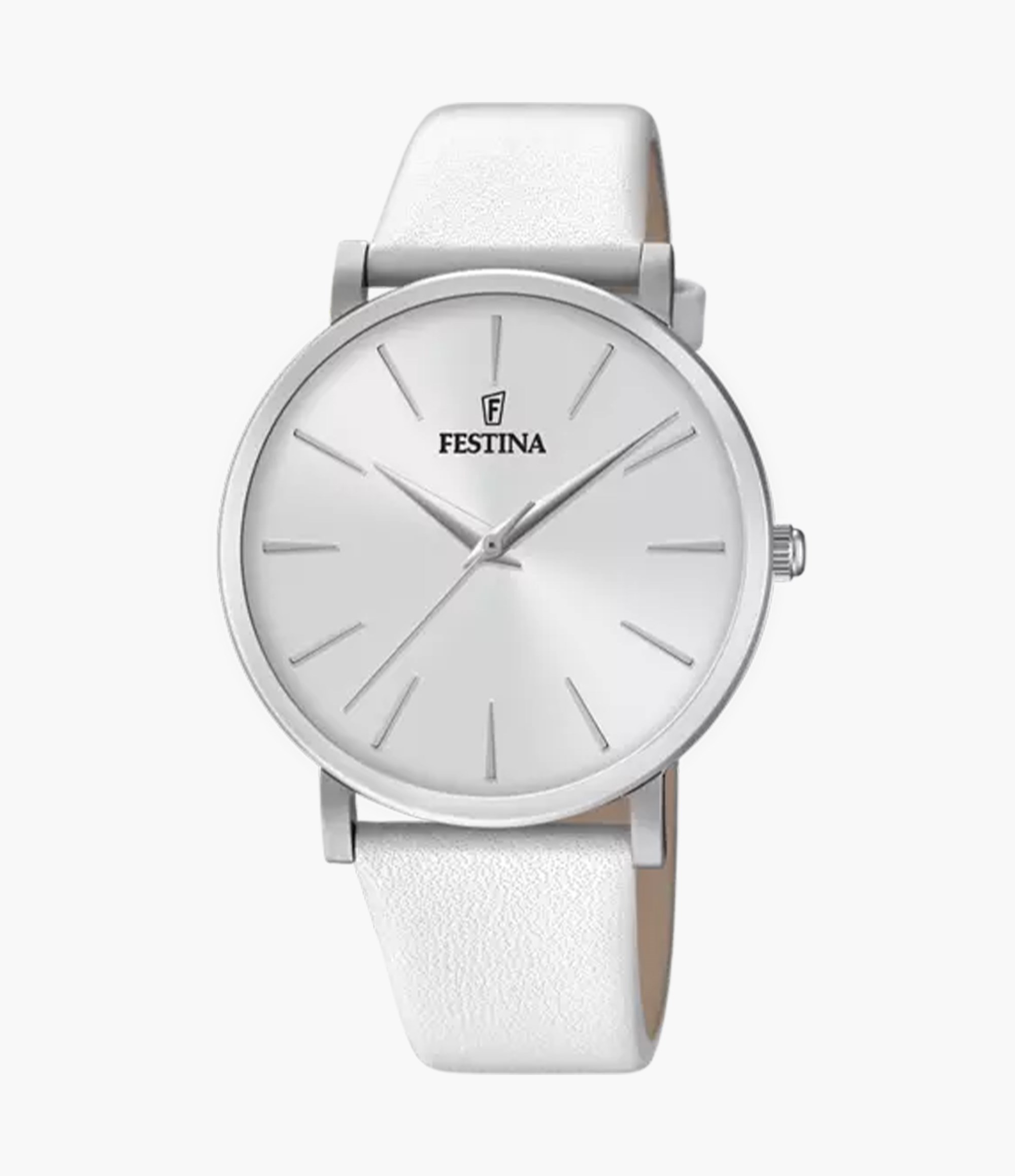 Orologio da donna in acciaio Festina e pelle bianca.