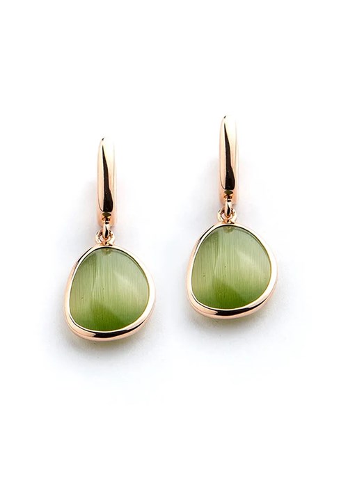 Orecchini pendenti Madì collezione GOCCE in argento rosè e pietra ovale verde
