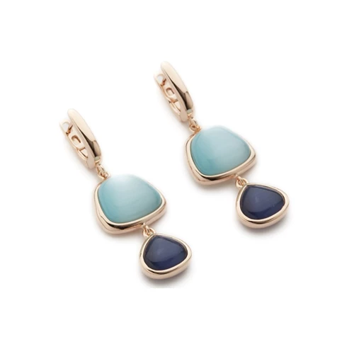 Orecchini pendenti Madì della collezione BLU in argento rosè e pietre blu e azzurre