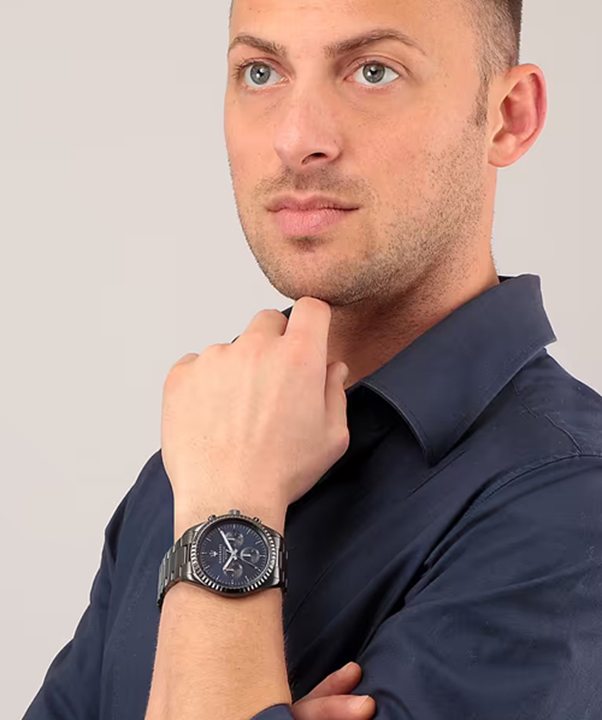 Orologio Maserati da uomo in acciaio nero con quadrante e ghiera blu