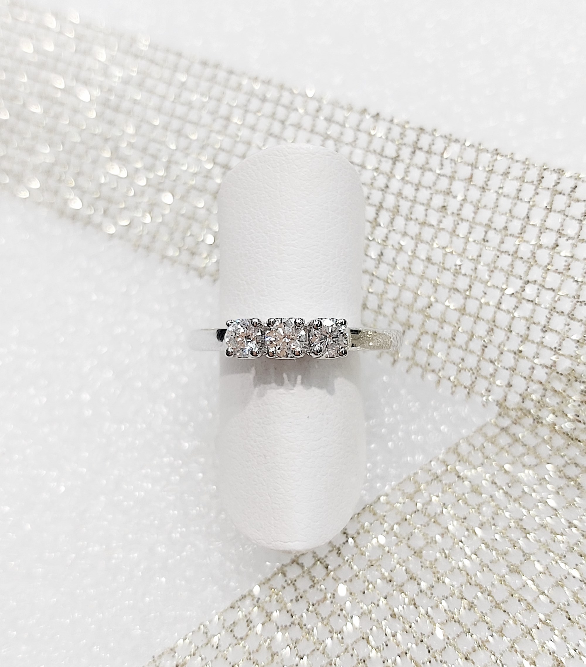 Anello in oro bianco trilogy con diamanti per un totale di carati 0.46. Un classico che non segue le mode. È il regalo perfetto per un anniversario o per una proposta di matrimonio.