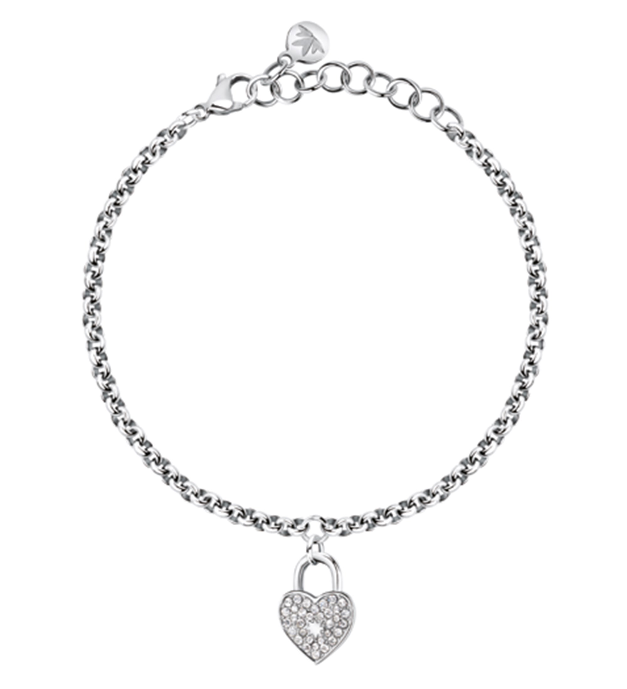 Bracciale da donna Morellato in acciaio con lucchetto a forma di cuore con pietre bianche. Romantico, raffinato, femminile. Un bracciale perfetto da regalare per dichiarare il proprio amore.