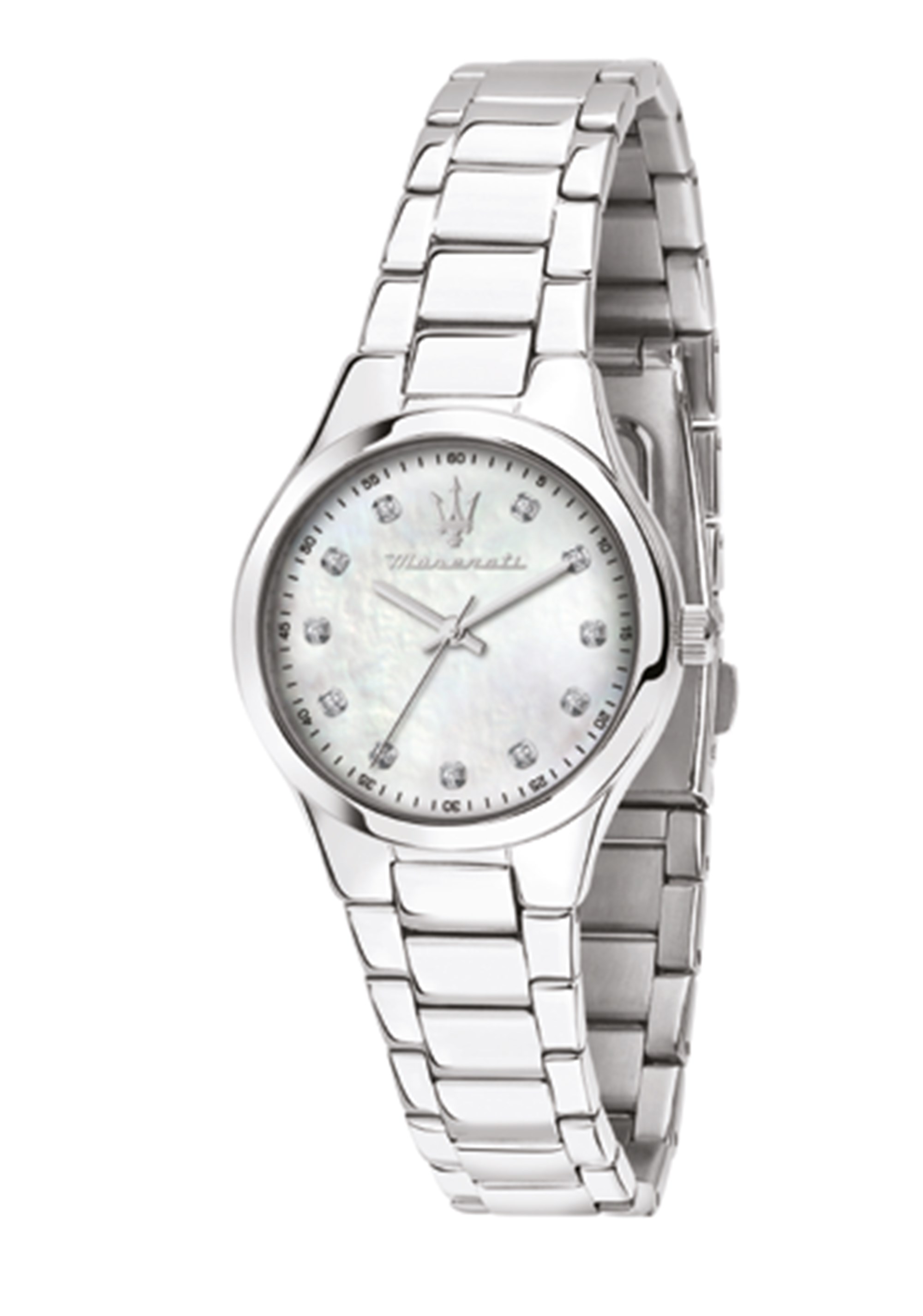 Orologio da donna Maserati in acciaio con quadrante in madreperla. Dimensioni della cassa 30 mm. Movimento al quarzo. Resistente all'acqua 5 atmosfere. Elegante, raffinato e dal design moderno.