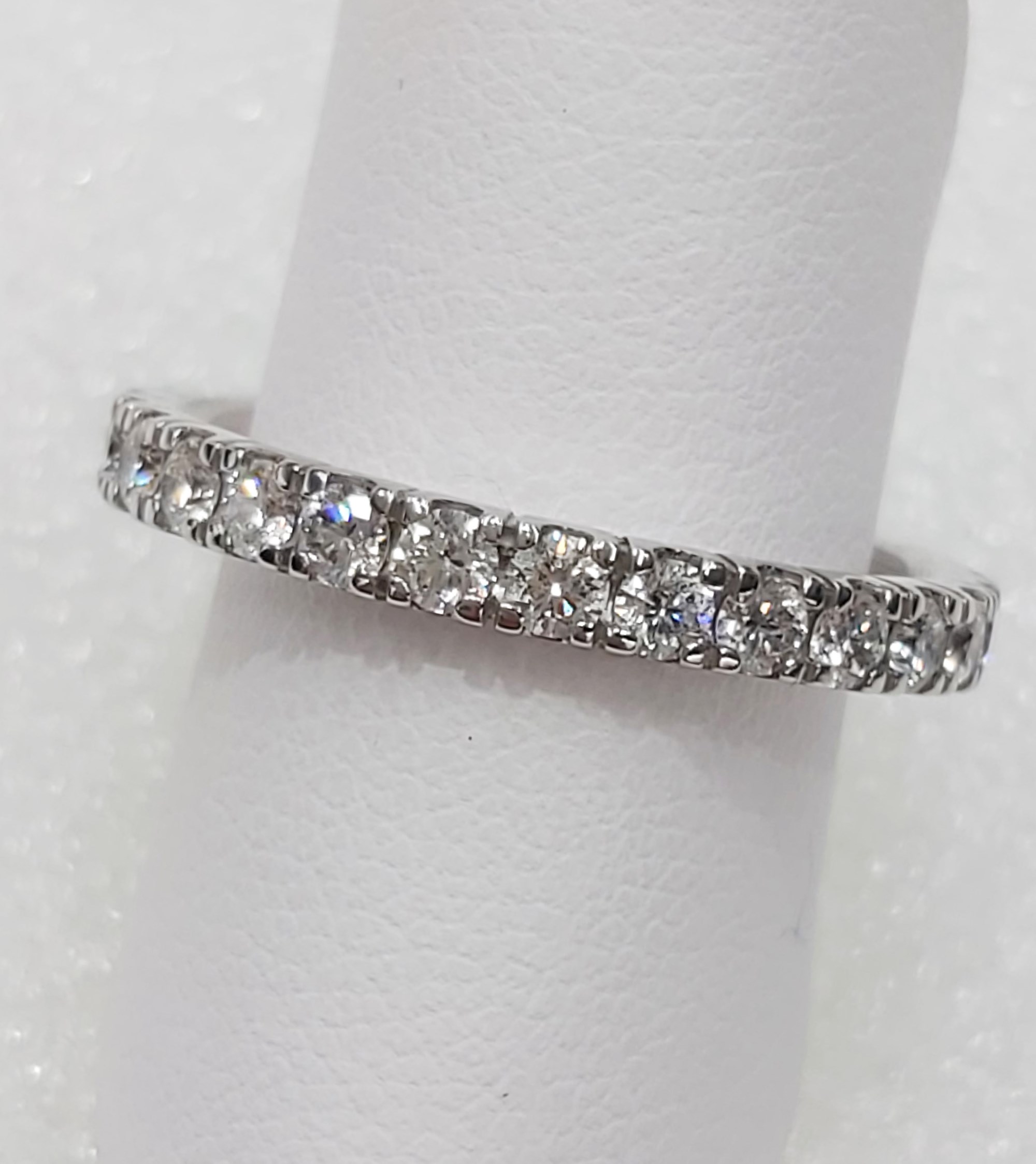 Anello eternity in oro bianco con diamanti per un totale di carati 0,74. Elegante, luminoso, prezioso, intramontabile. Regalo perfetto per dichiarare il proprio AMORE.