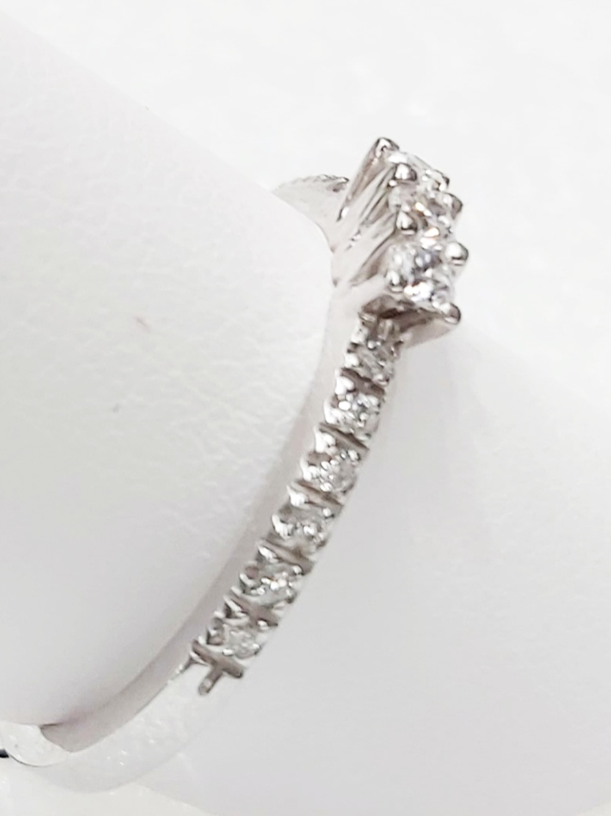 Anello in oro bianco tipo trilogy con pavè di diamanti per un totale di carati 0,26. Sempre bello e sempre att ... leggi tutto>>