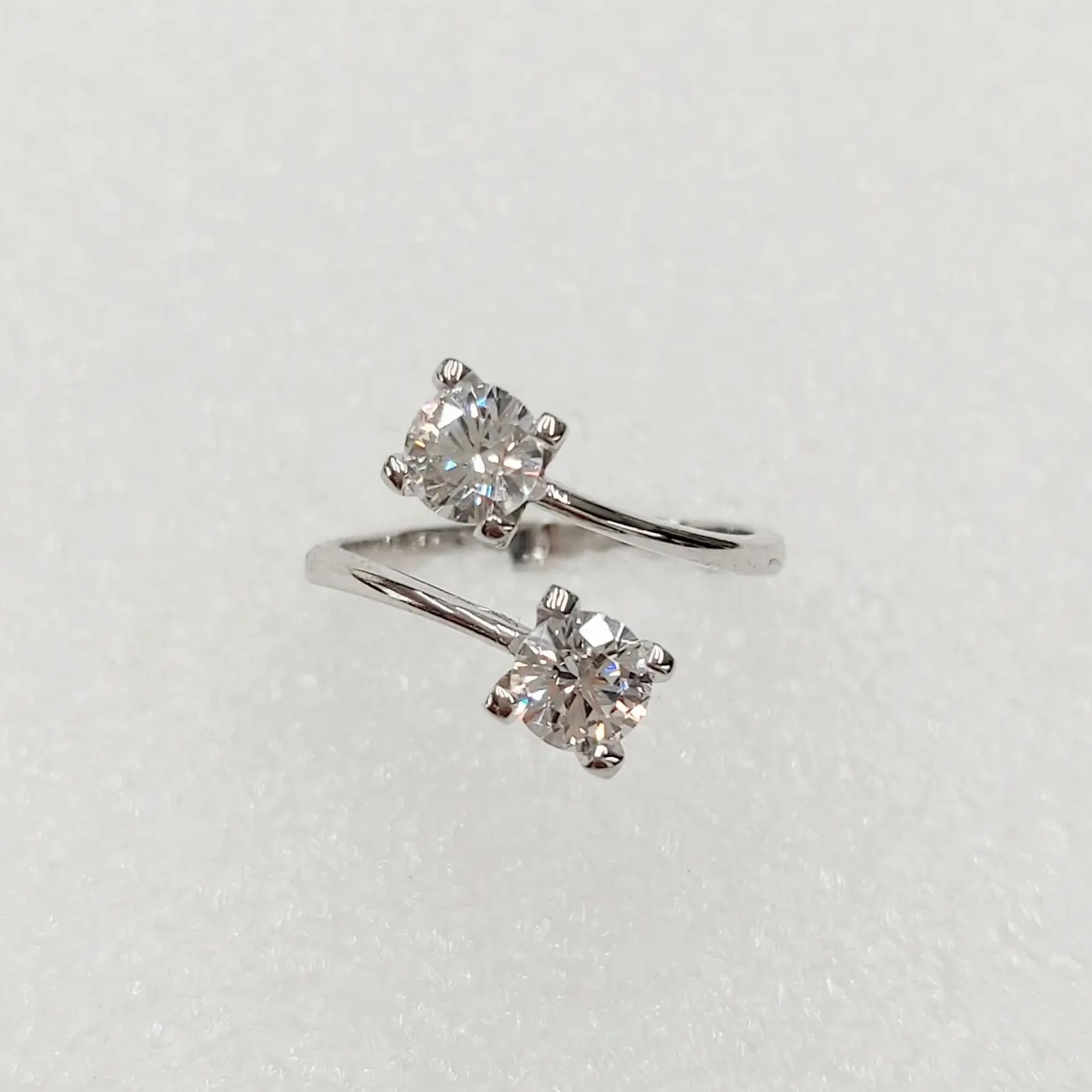 Anello in oro bianco con due zirconi. Un anello dal design essenziale e raffinato. Giovanile, innovativo. Regalo perfetto per un compleanno o un anniversario.