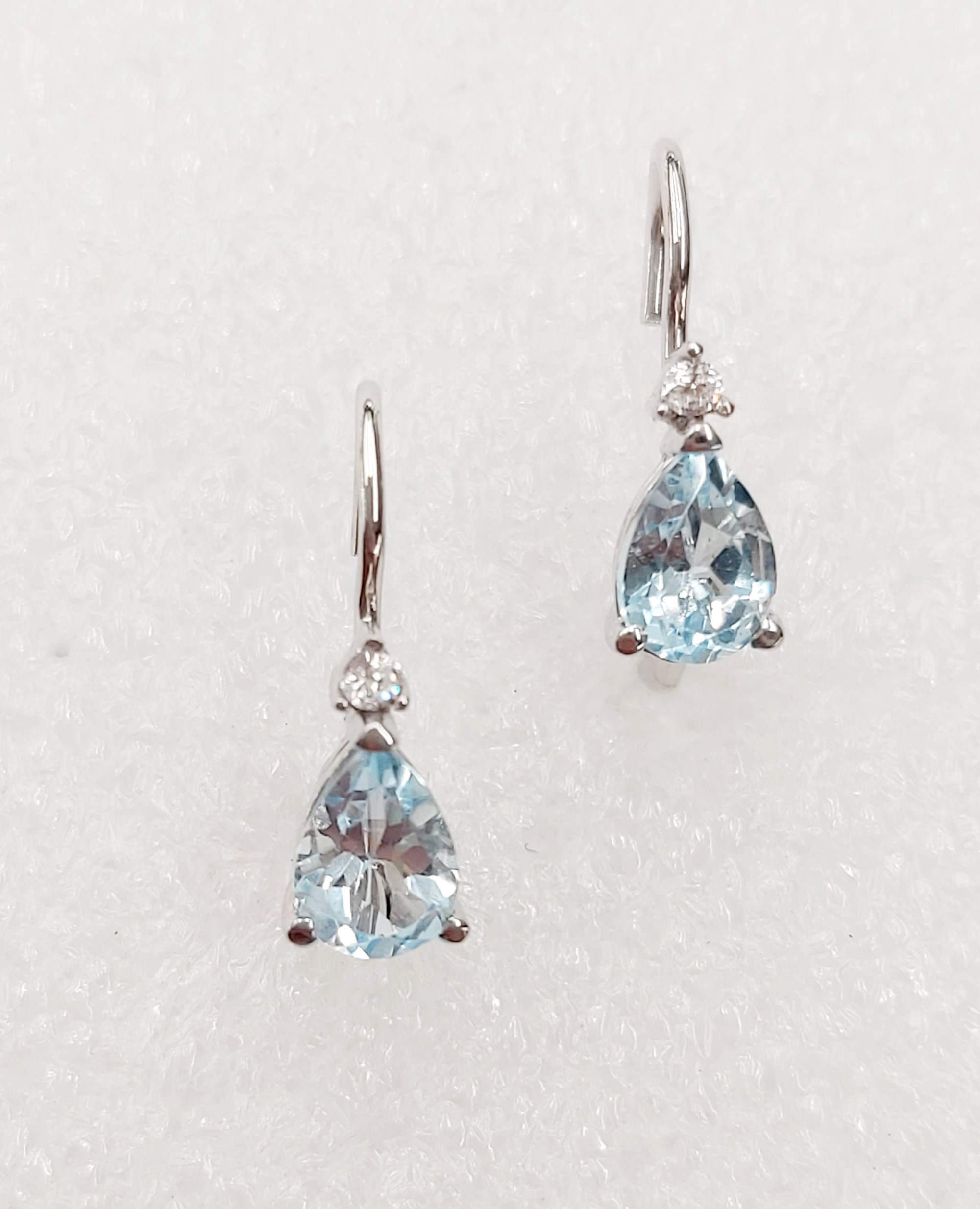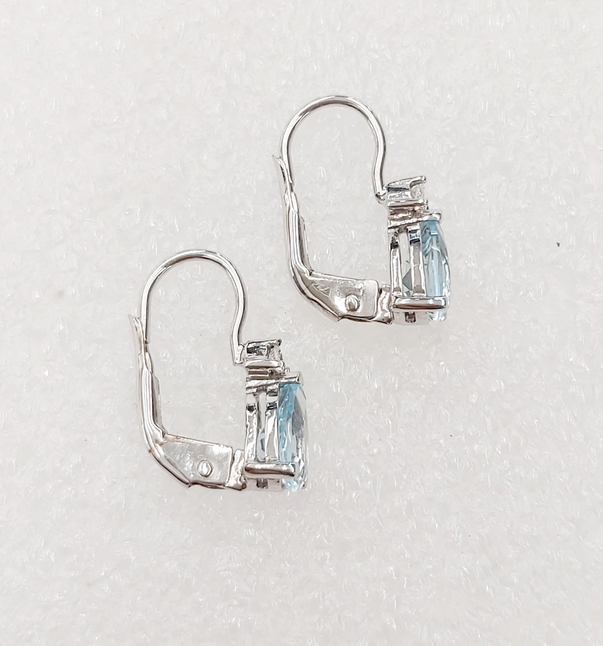 Orecchini in oro bianco con topazi azzurri a forma di goccia e zirconi bianchi. Raffinati, eleganti. La monta ... leggi tutto>>
