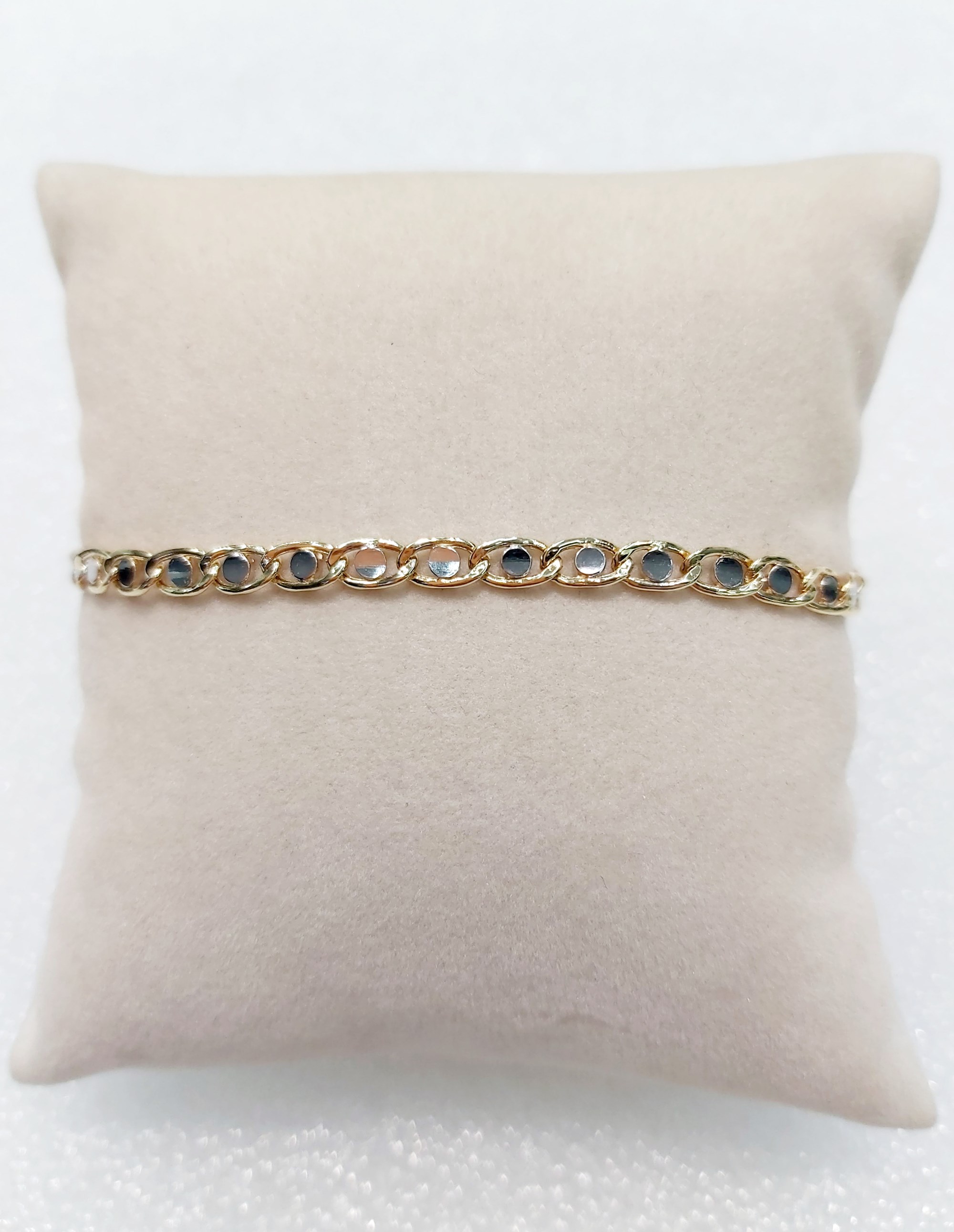Bracciale in oro giallo e bianco con maglie piatte